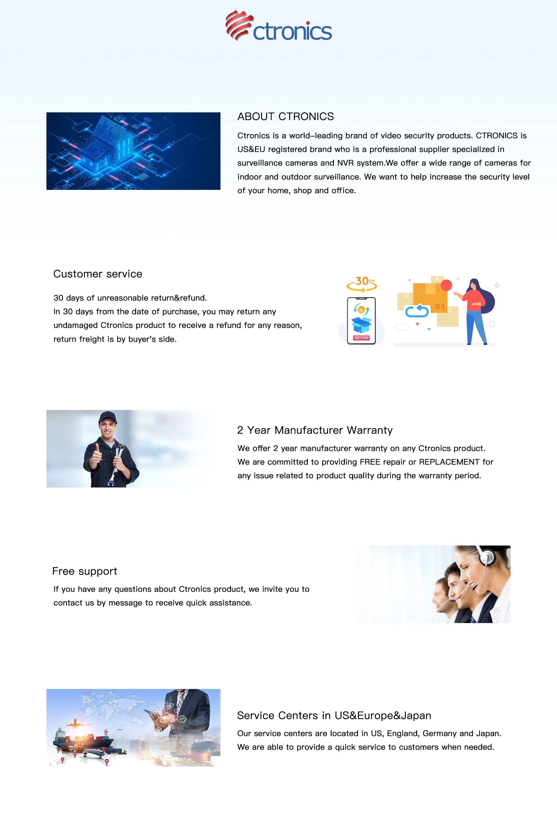 Ctronics cameras not only use more advanced chips, but also ensure product quality in every details.